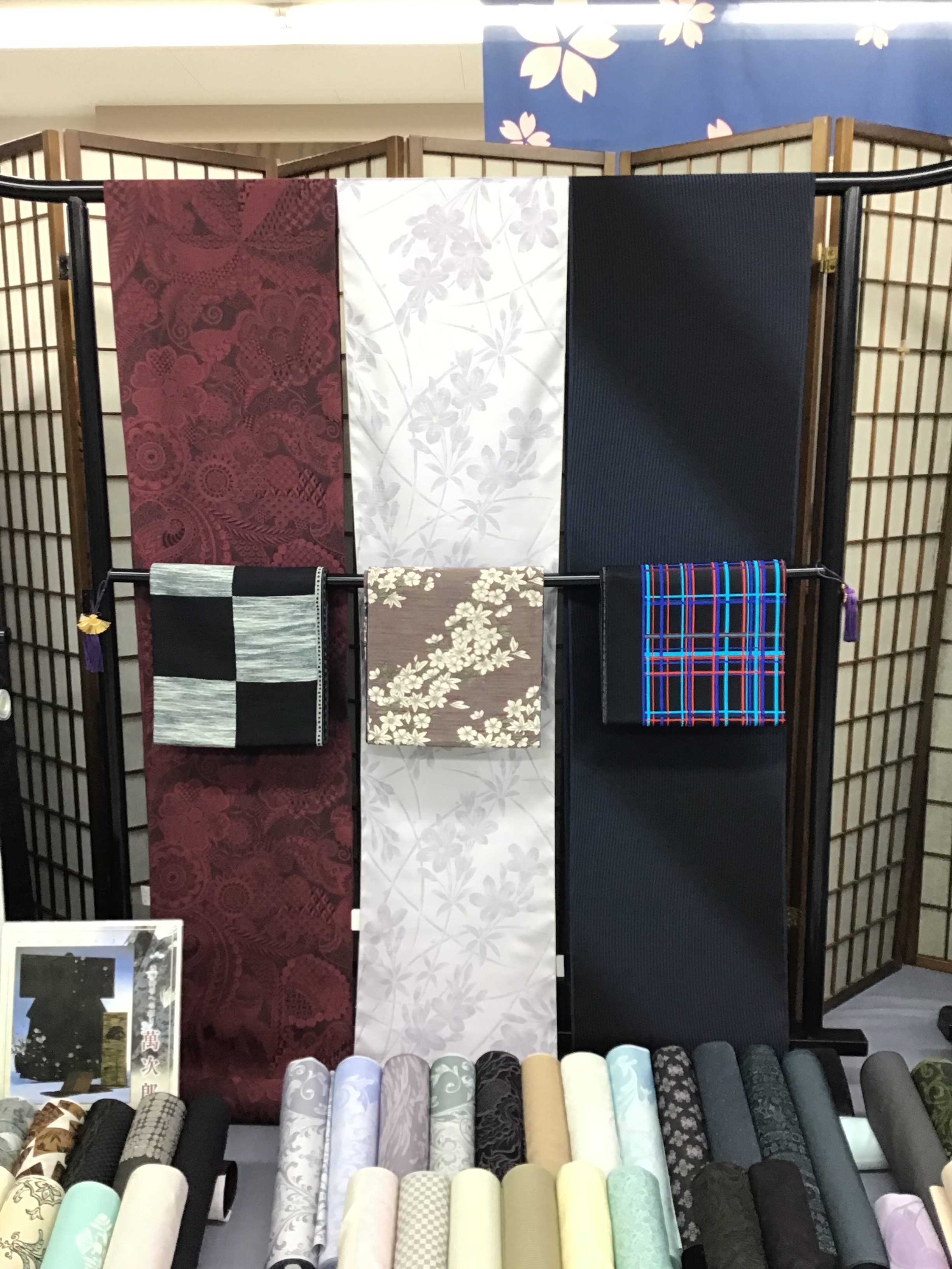 筆者が感動したのが、男性のお茶人用に作られたという着尺。ハリがあるのにしっとりと滑らかな肌触りです。これぞ良い御召!という感じ。写真では絶対に表現出来ないので、是非来校して正統派西陣の御召に触れてみてください!!